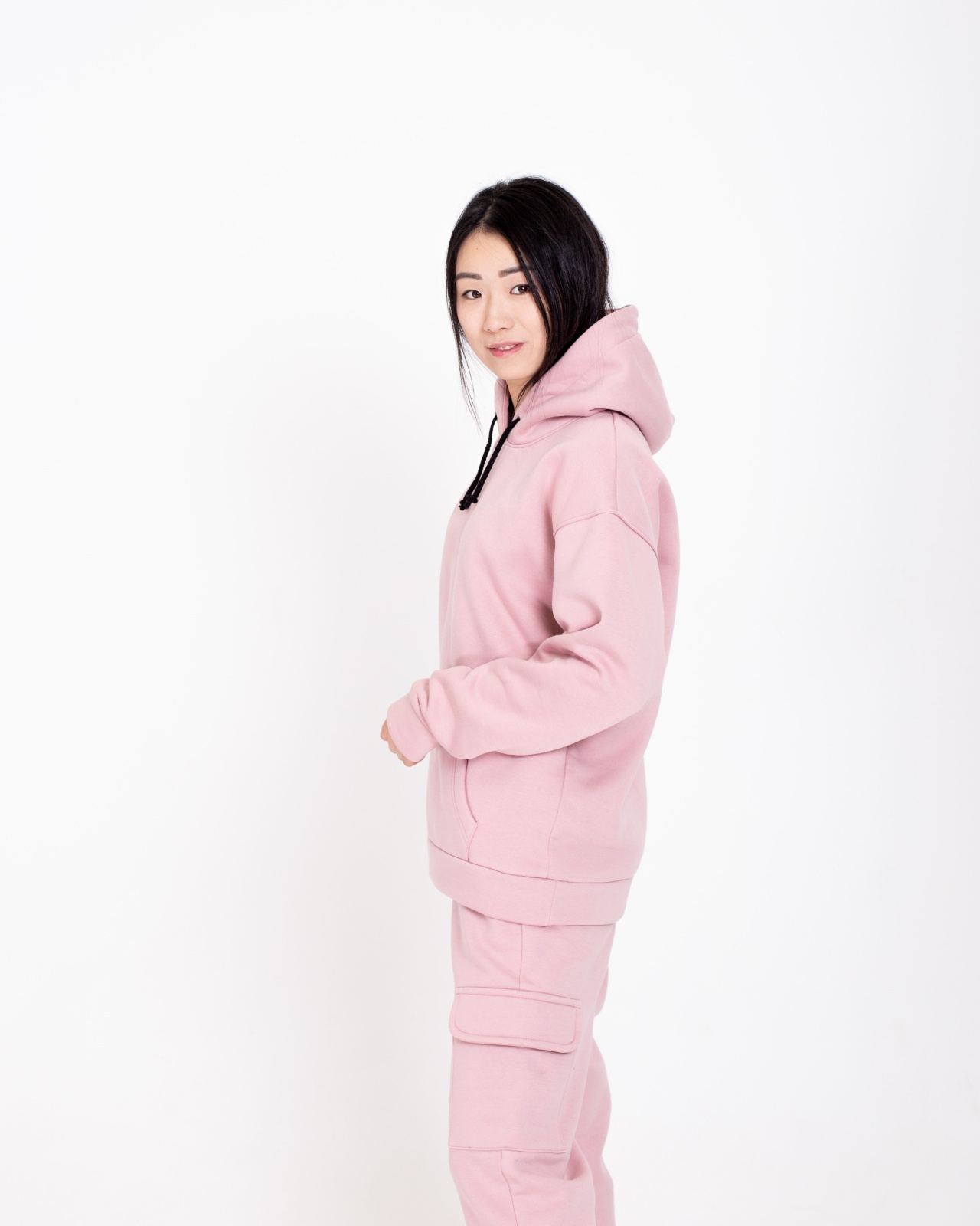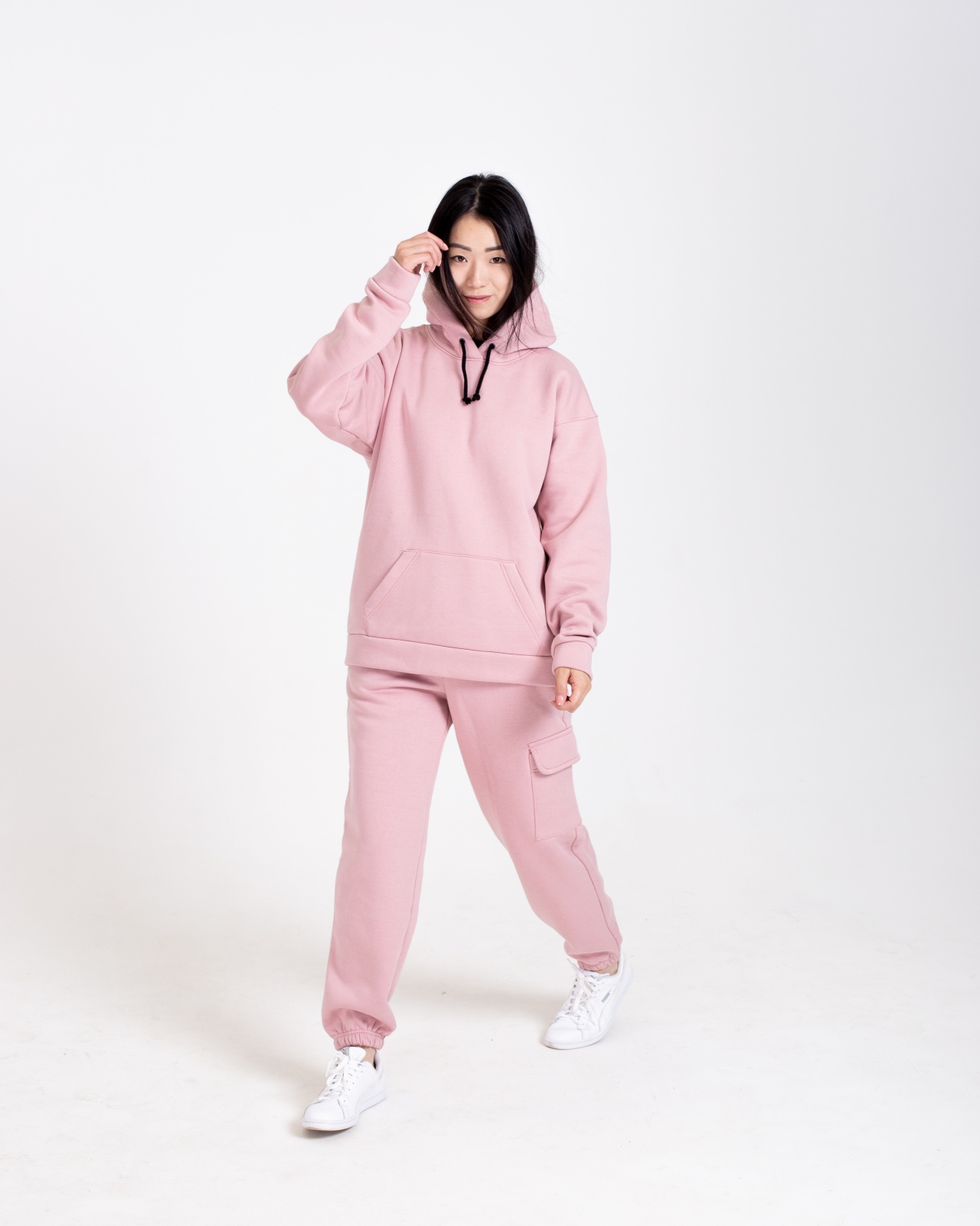 Свободный крой, унисекс-дизайн и нежный пудрово-розовый оттенок делают костюм универсальным и удобным для мужчин и женщин. Комплект включает в себя худи с капюшоном и джоггеры — тёплый спортивный костюм отлично садится по фигуре, не сковывает движений и подходит на температуру от +5 до +18°C.